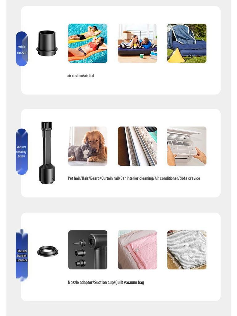 Беспроводной портативный автомобильный и бытовой пылесос с функцией выдува и всасывания, многофункциональный насос для накачивания