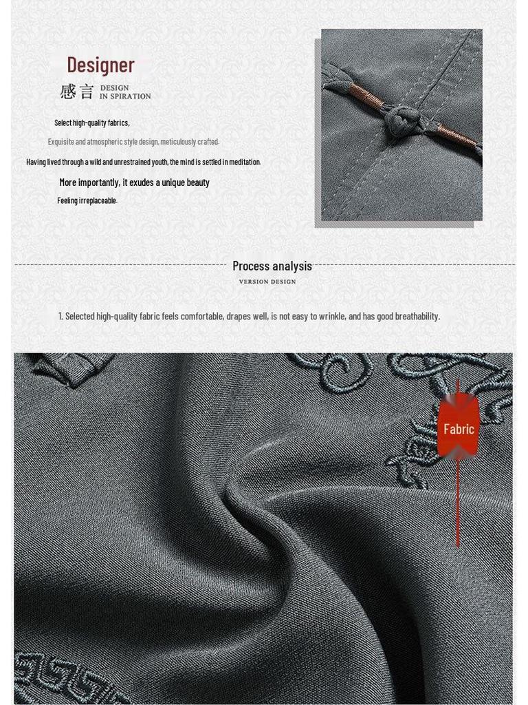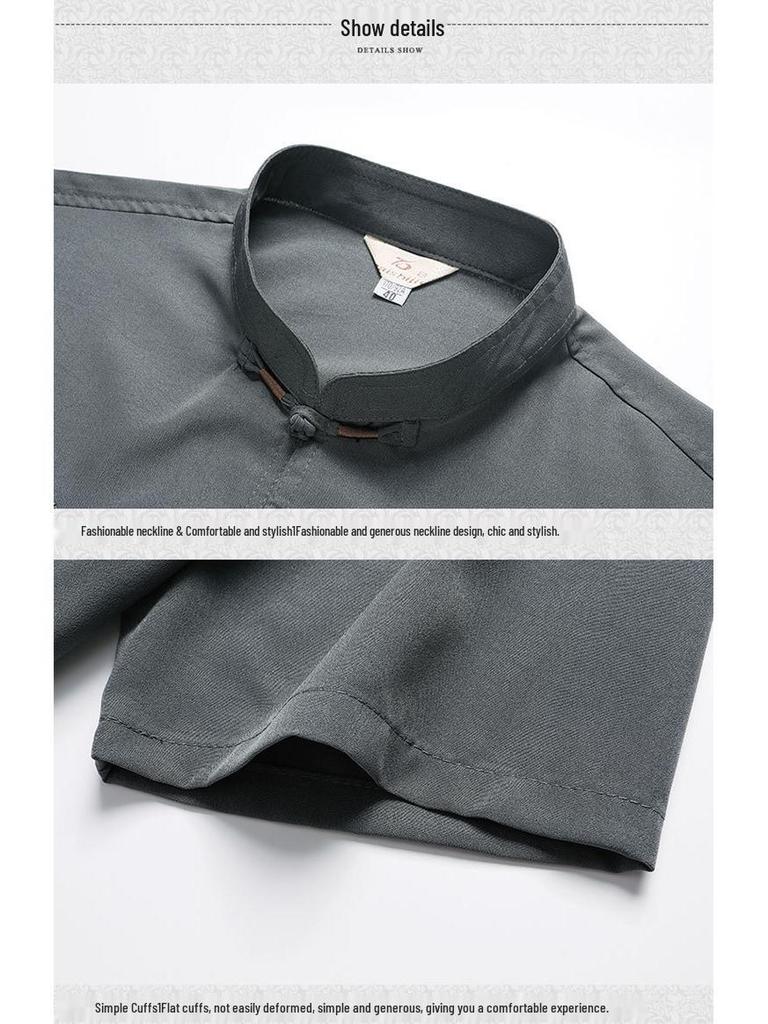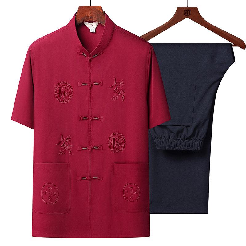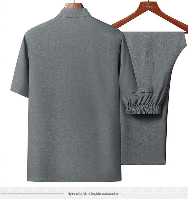 Откройте для себя вневременную элегантность и комфорт с этим стильным летним ансамблем, разработанным специально для мужчин среднего и пожилого возраста.. Изготовленный из высококачественной полиэстеровой смеси, костюм обеспечивает долговечность и мягкость на ощупь.. Благодаря коротким рукавам он идеально подходит для теплой погоды, обеспечивая воздухопроницаемость и свободу движений.. Классический китайский стиль добавляет нотку изысканности, идеально подходя как для повседневных прогулок, так и для особых случаев.. Примите традицию с современным комфортом в этом уникально скроенном комплекте танского костюма.