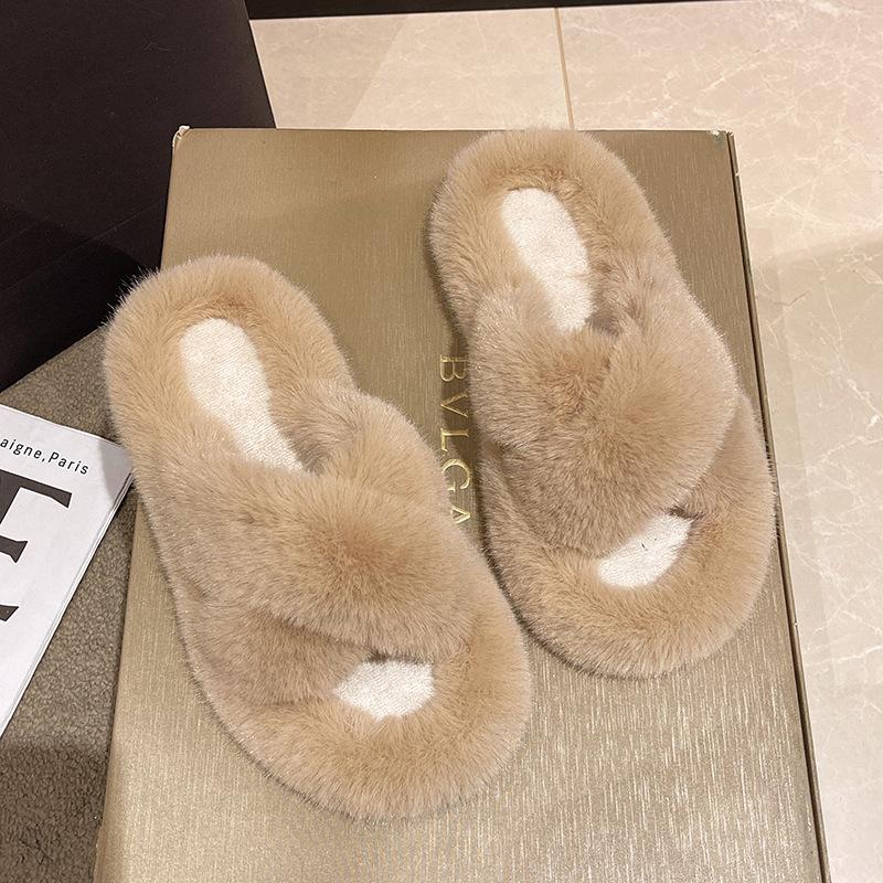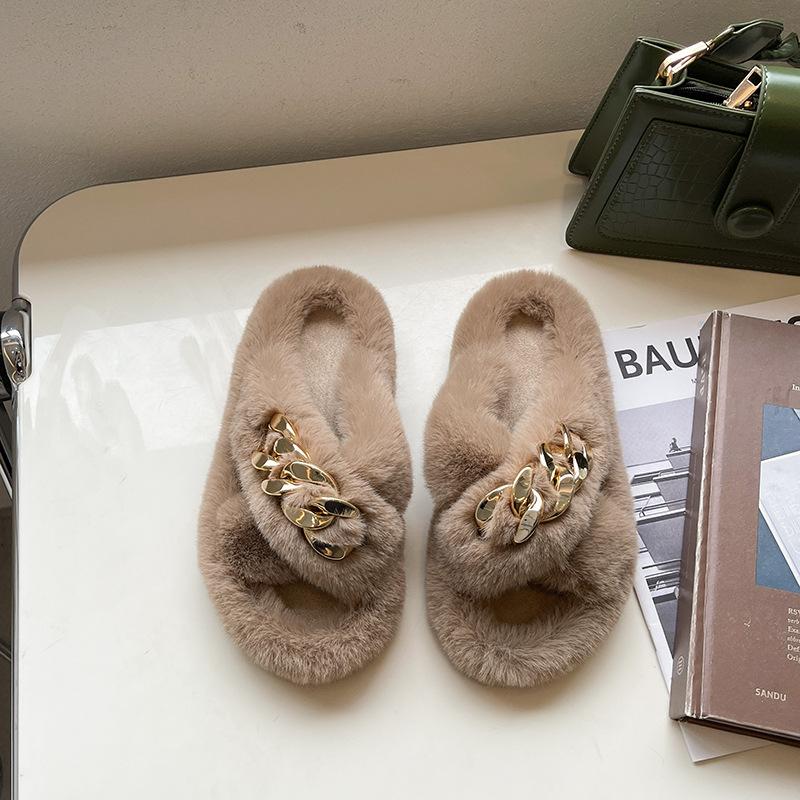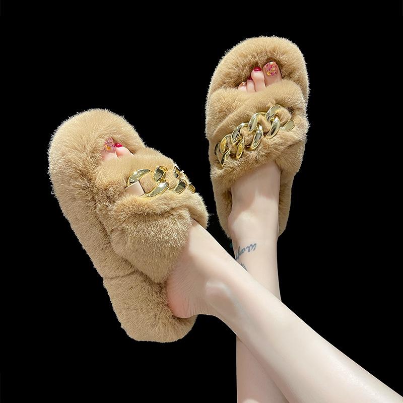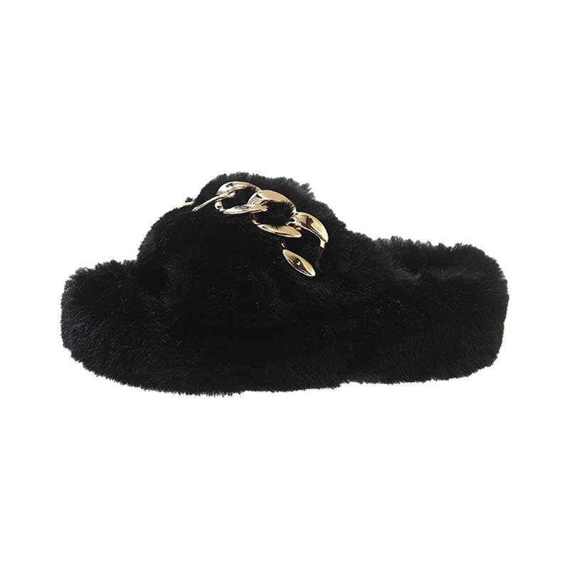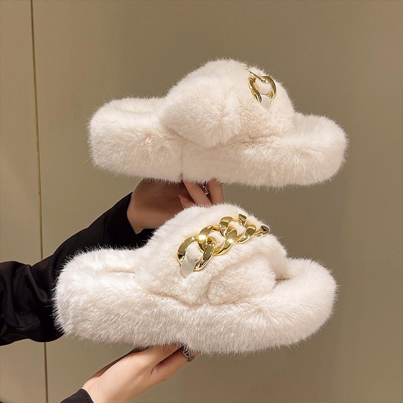 Европейские товары утолщенные пушистые тапочки на высокой подошве женские носят высококлассные взрыв весна и осень цепочка интернет-знаменитость крест плюшевые тапочки