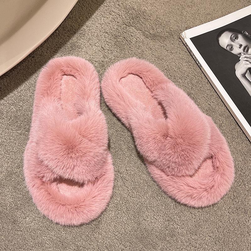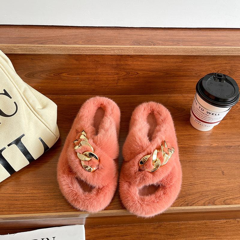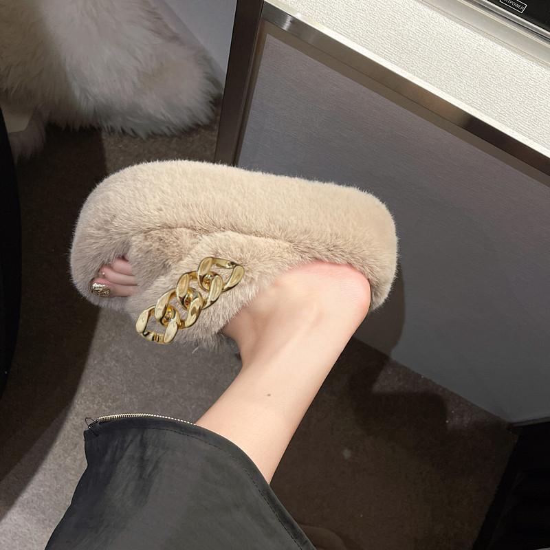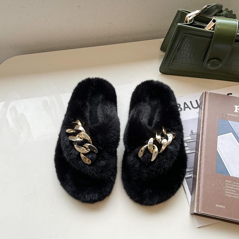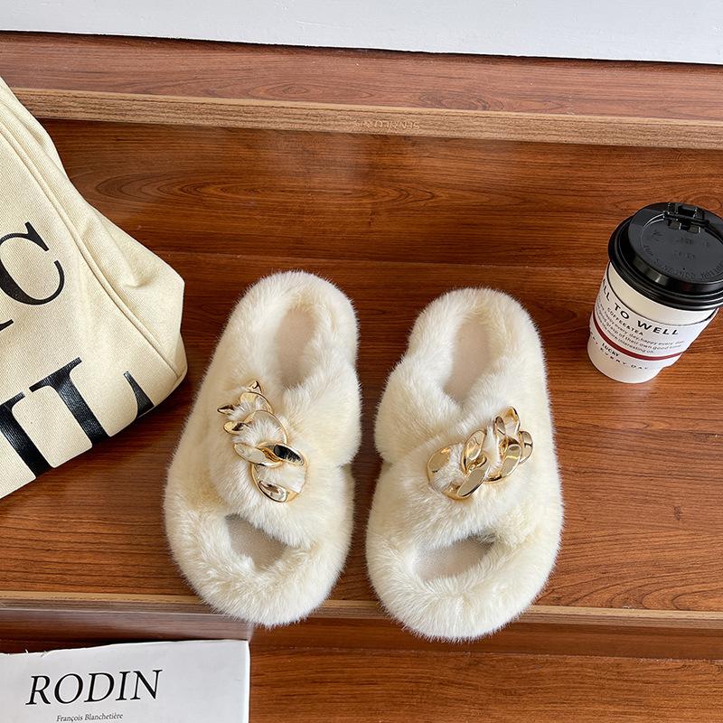 Европейские товары утолщенные пушистые тапочки на высокой подошве женские носят высококлассные взрыв весна и осень цепочка интернет-знаменитость крест плюшевые тапочки