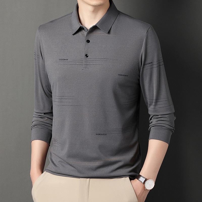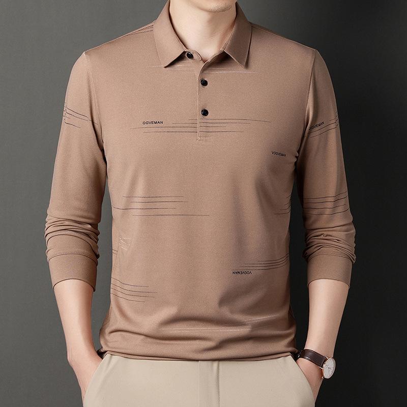 Осенняя футболка с длинными рукавами, мужская, с лацканами, для мужчин среднего возраста, модная повседневная футболка-пуловер для мужчин