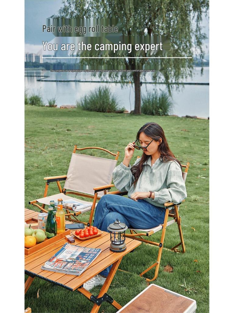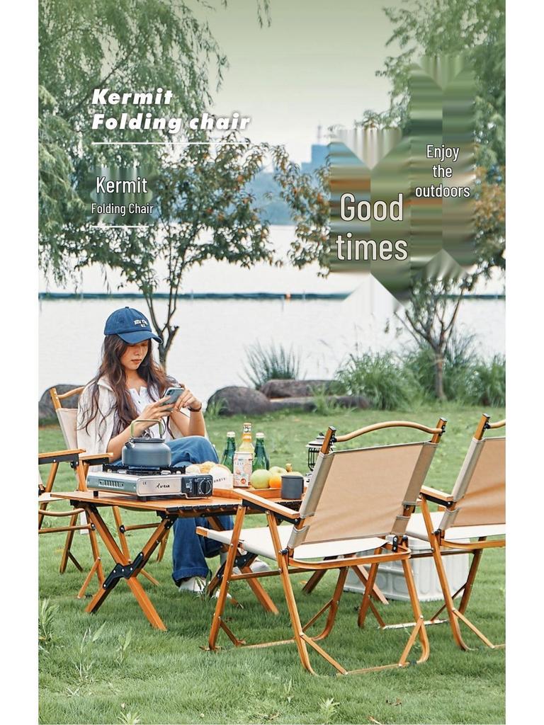Складной походный стул с ручкой из бука – Портативный табурет Кермита из ткани Оксфорд