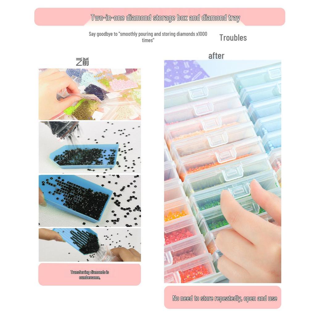 Набор для хранения алмазной мозаики: Перекидная сверлильная пластина с 30 ящиками + Ящик для хранения и наклейки
