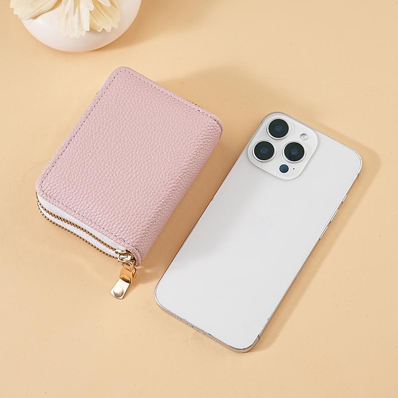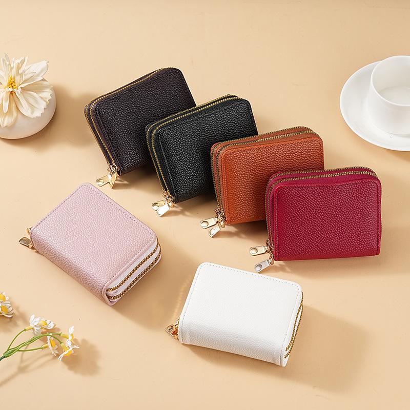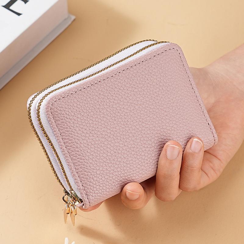 Женский кошелек для монет на двойной молнии TEMU - Большая вместимость, однотонный, с узором личи