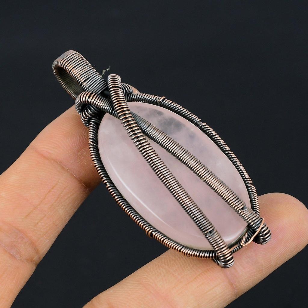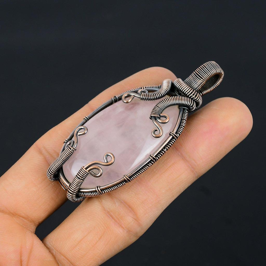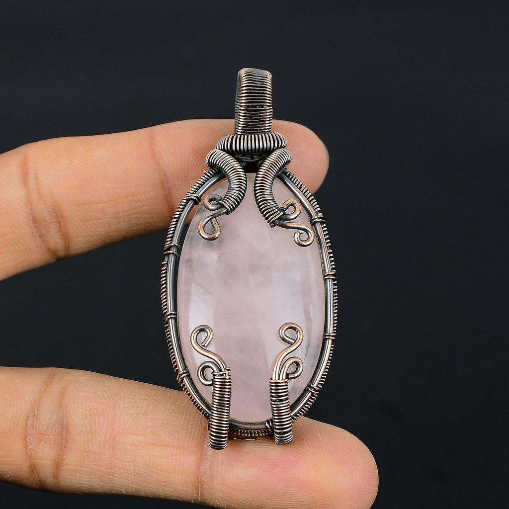 Украшения из розового кварца, кулон, обернутый медной проволокой 999 пробы, украшения из драгоценных камней ручной работы, подарки для жены, совершенно новый кулон