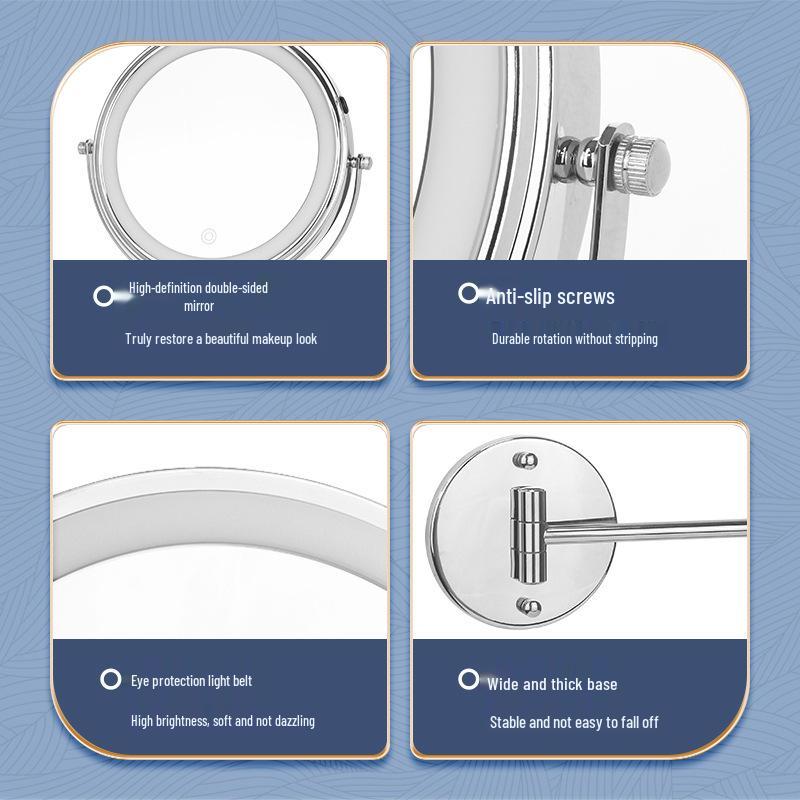 Настенное перезаряжаемое складное зеркало для макияжа с подсветкой - Двустороннее увеличительное светодиодное зеркало для макияжа