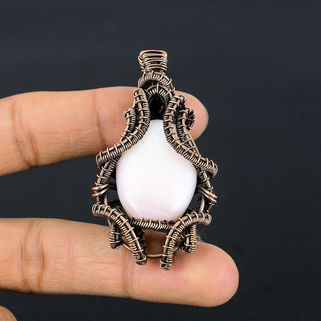Подвеска из розового опала, обернутая медной проволокой 999 пробы, Ювелирное украшение с подвеской из драгоценного камня ручной работы, Подарки для жены, Совершенно новая подвеска