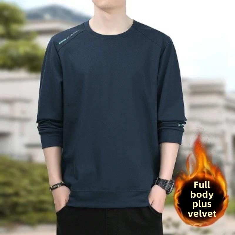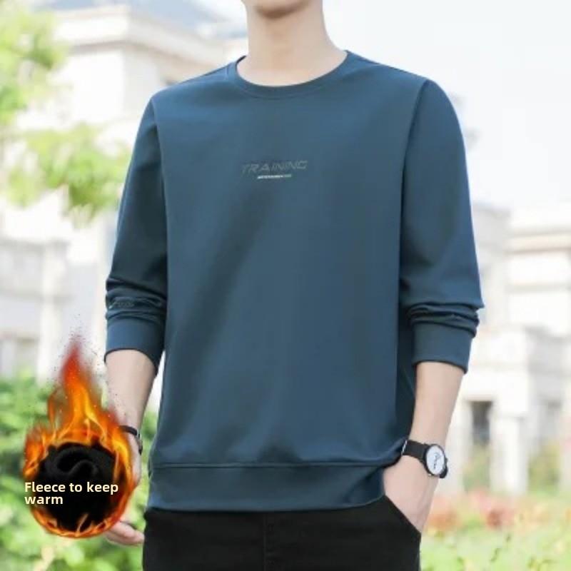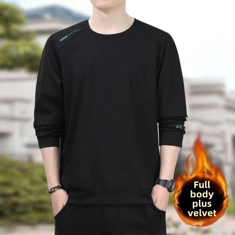Новая мужская флисовая толстовка на осень и зиму, повседневная толстовка, пуловер с круглым вырезом, универсальная рубашка большого размера