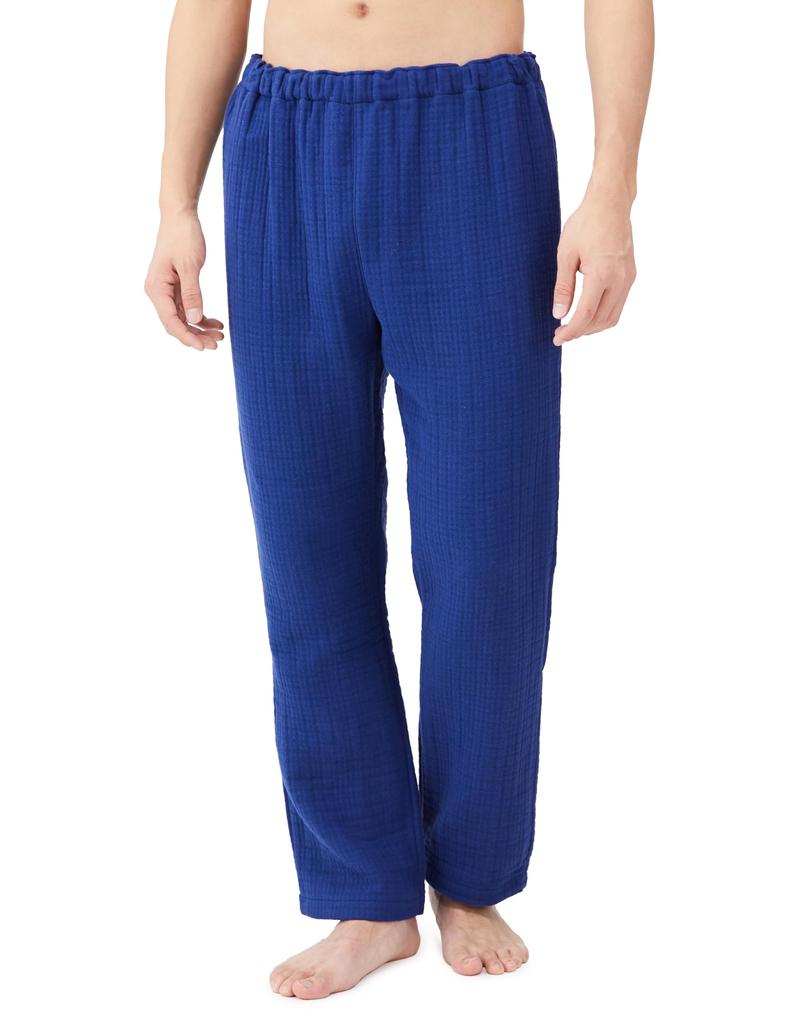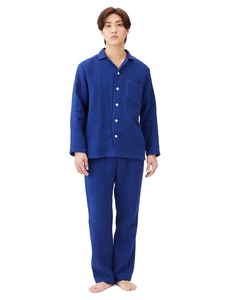 Gunze KAIMIN NAVI Коллаборация с пижамой с длинным рукавом и королевского размера L для мужчин, UCHINO, Брюки, Вафельно-марлевая ткань, Синий,