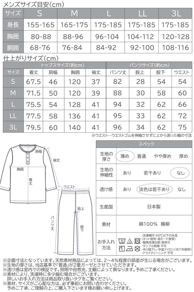 Размер L [Верх] Длина/75.5см, Обхват груди/128см, Ширина плеч/54см, Длина рукава/41см [Брюки] Длина брюк/94см, Посадка/32см, Внутренний шов/62см, Талия/66см