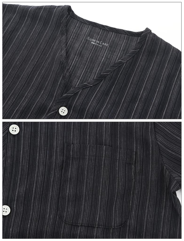 Эта пижама изготовлена из текстурированного материала шиджира, что делает ее удобной даже в жаркую погоду.