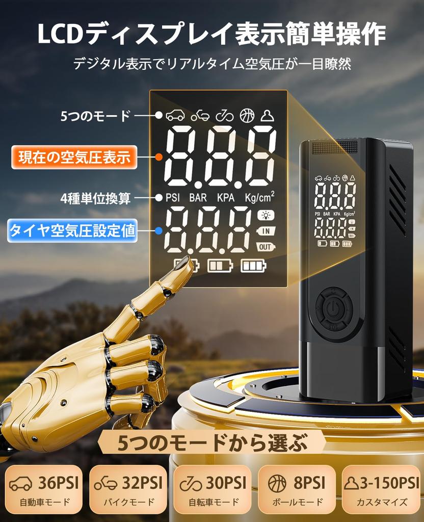 [Большой ЖК-экран и свет высокой яркости] Автомобильный насос оснащен большим цифровым дисплеем, который отображает точные данные в реальном времени, позволяя вам проверить давление в шинах с первого взгляда. Он также оснащен ярким фонариком, что делает его полезным на улице ночью или в чрезвычайных ситуациях, таких как отключение электроэнергии.
