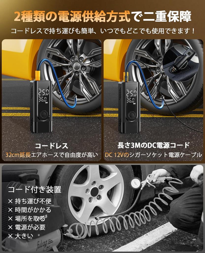 [Беспроводной Портативный и Двойные Способы Питания] Электрический воздушный насос Zgzuxo имеет конструкцию с двойным питанием, позволяющую переключаться между беспроводным питанием и питанием от прикуривателя.. Он обладает сверхбольшой вместимостью. Этот насос может накачать до четырех автомобильных шин на одной зарядке.. В случае отключения питания в комплекте идет 3-метровый шнур питания 12 В постоянного тока для прикуривателя, позволяющий подключить его к вашему автомобилю для питания.. Это значит, что вам не придется беспокоиться о том, что у вас закончится заряд в дороге.