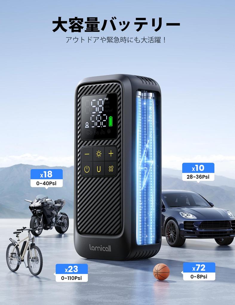 Lamicall Электрический насос для велосипеда: Автомобильный воздушный насос для шин, Мотоциклетный воздушный компрессор, Компактный автоматический насос большой емкости, Светодиодный фонарик, Автоматическое отключение, Низкий уровень шума, Зарядка Type-C, Максимальное давление 150 PSI, Совместим с французскими и автомобильными ниппелями, Сумка для хранения, Совместим с мопедами, шоссейными велосипедами и мячами