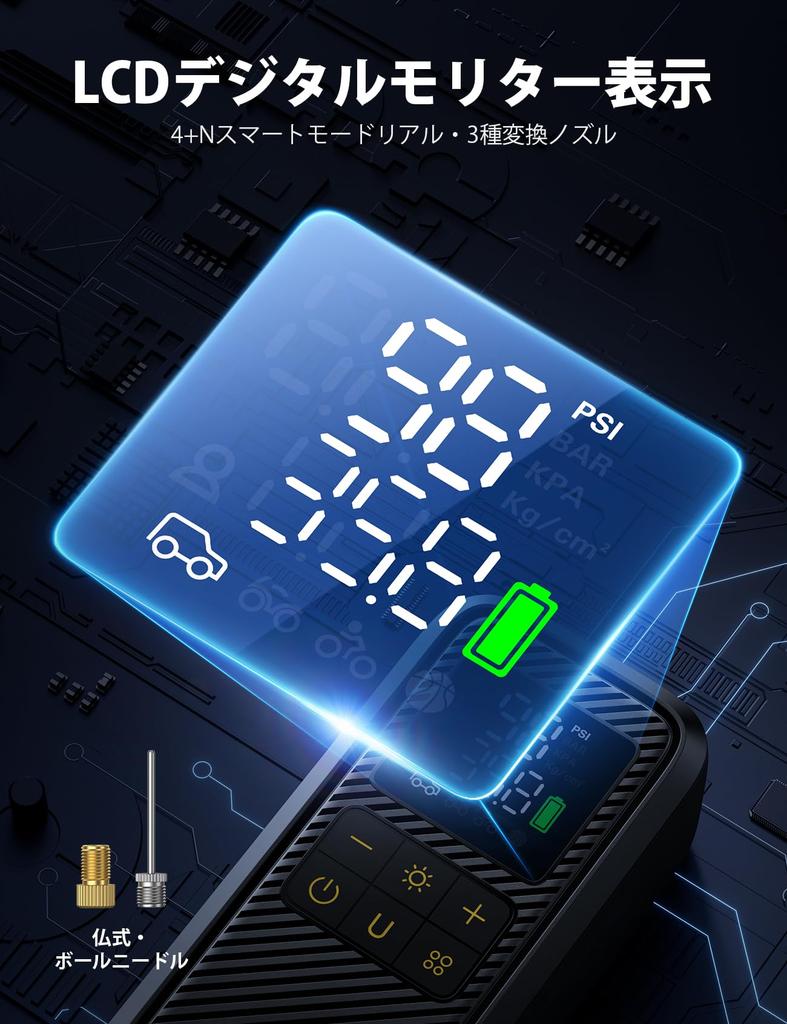 [ЖК-цифровой дисплей и 4+N интеллектуальных режима для измерения давления воздуха в реальном времени] Этот электрический воздушный насос оснащен ЖК-цифровым дисплеем, который отображает информацию, такую как единицы давления, режим давления воздуха, оставшийся объем воздуха, установленное давление воздуха и показания давления воздуха в реальном времени. Цифры легко читаются даже ночью, для безопасной накачки.. Вы можете установить пять режимов: велосипед, автомобиль, мотоцикл и мяч. Единицу измерения давления воздуха можно переключать между четырьмя вариантами.: кг/см², БАР, КПа и PSI. Им легко пользоваться одним касанием, поэтому даже новички могут чувствовать себя спокойно.