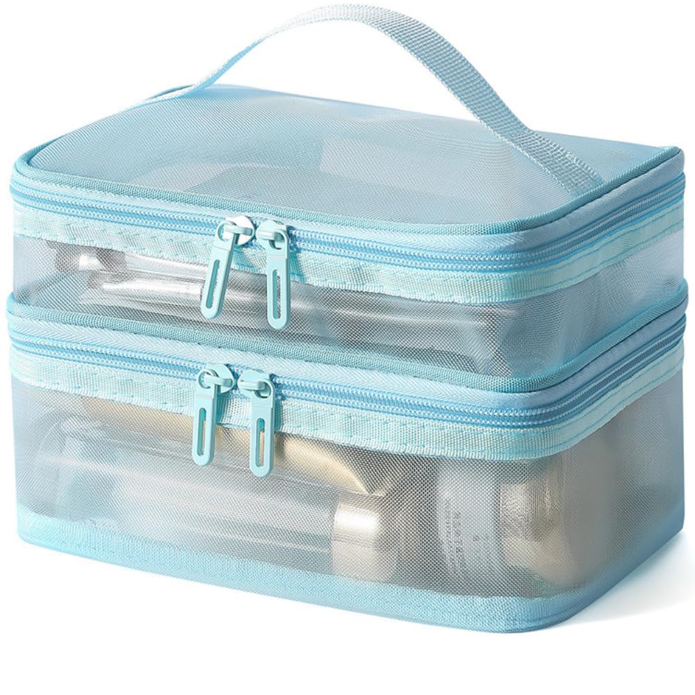 ARESACHI Косметичка для макияжа, большая вместимость, косметичка, косметичка, коробка, (Светло-синий)