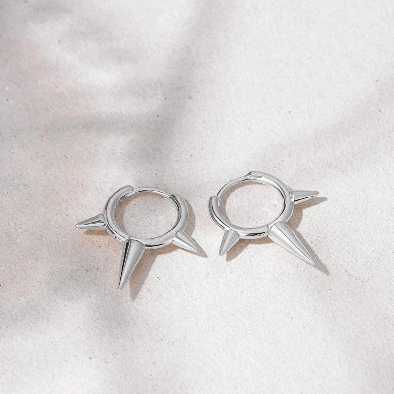 Серьги-пусеты из серебра 925 пробы в форме конуса с тремя шипами в стиле панк