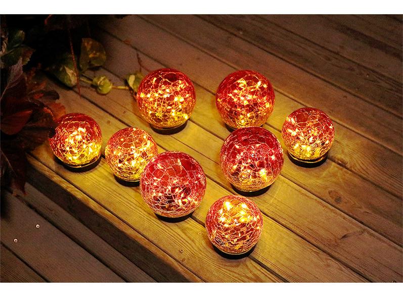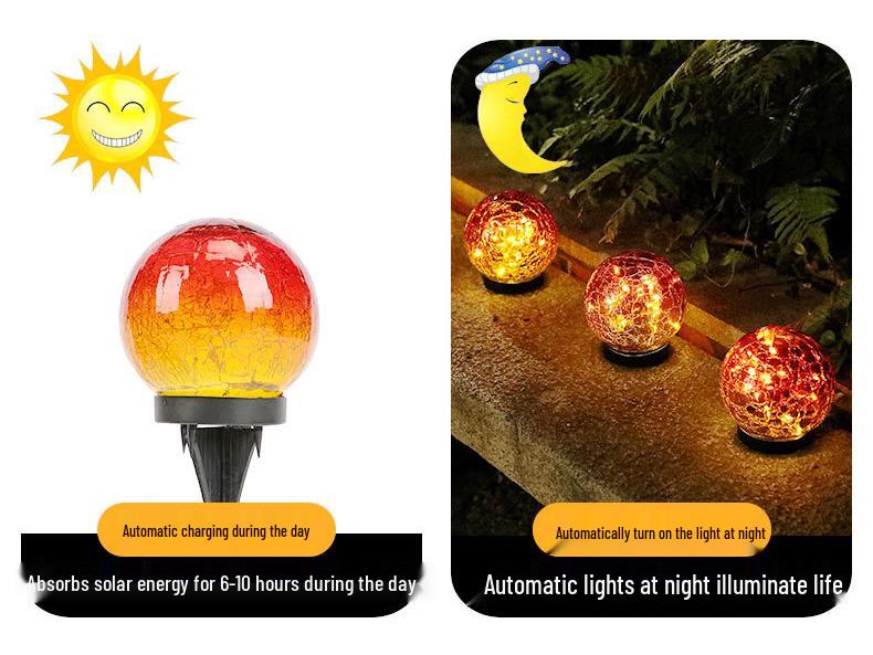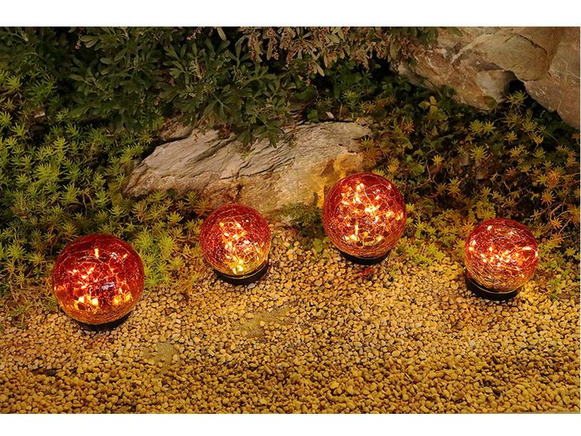 Солнечный красный светильник-шар из потрескавшегося стекла - Водонепроницаемый уличный декор для сада и газона