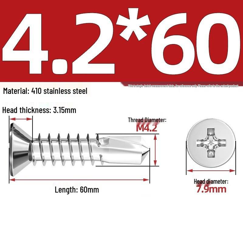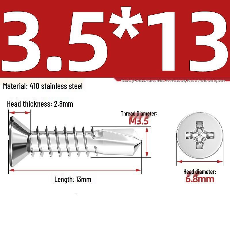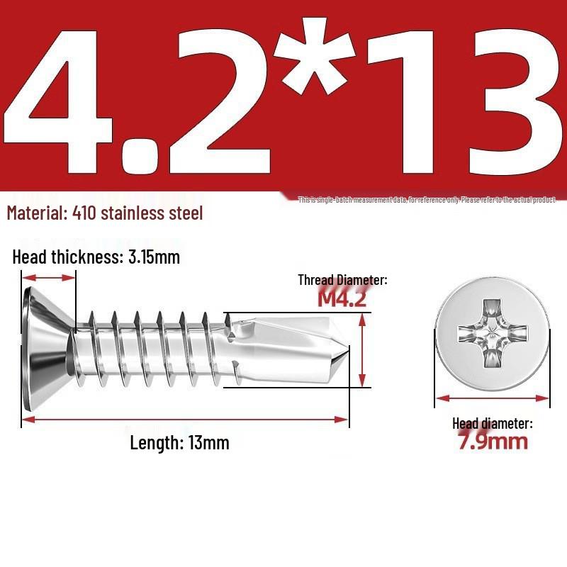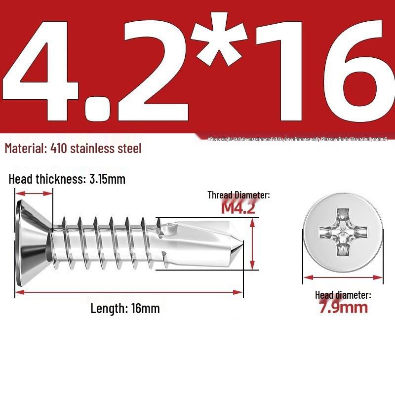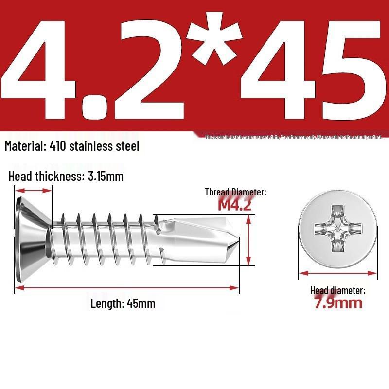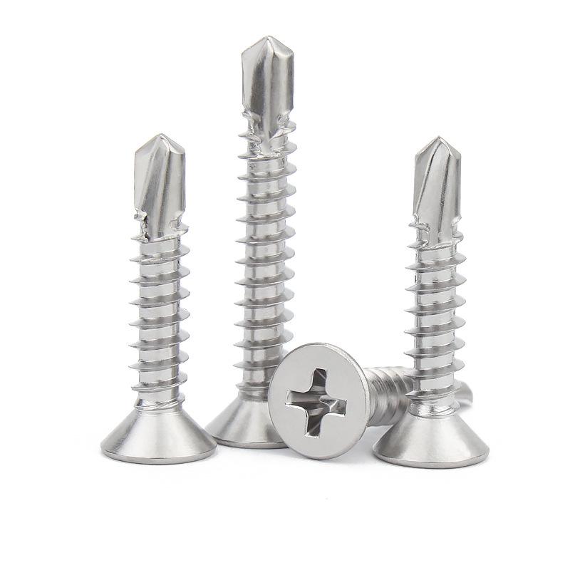 Саморезы из нержавеющей стали 410 с плоской головкой, крестообразным шлицем, потайной головкой и хвостовиком «ласточкин хвост»