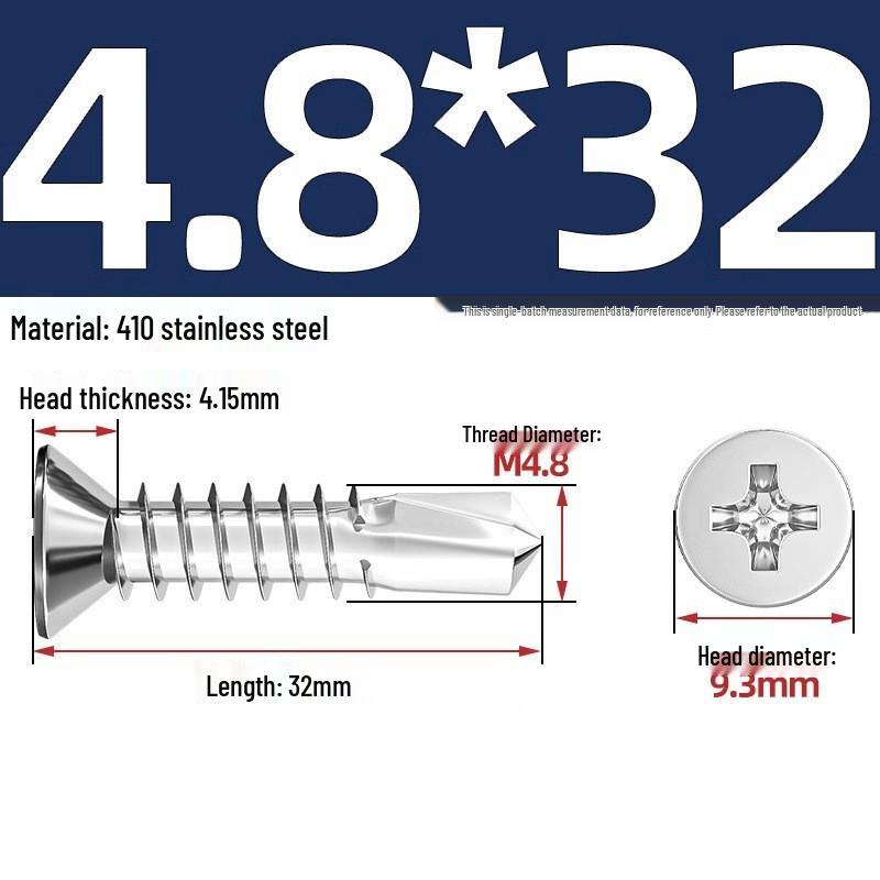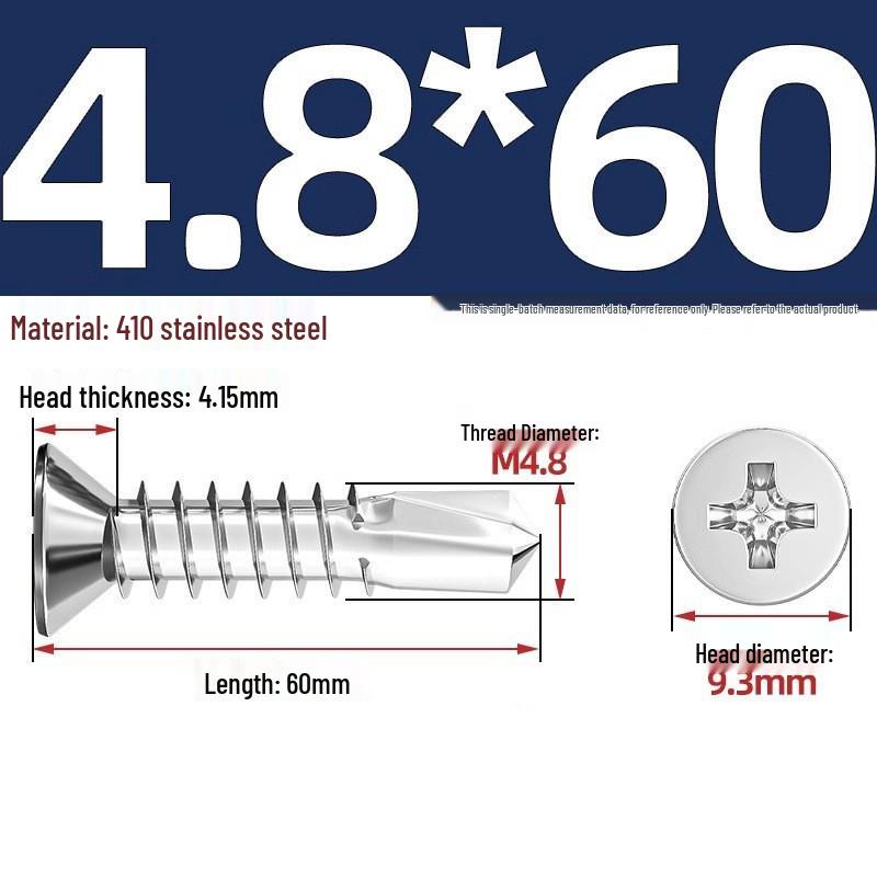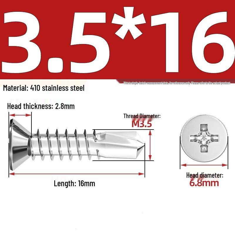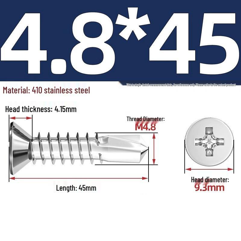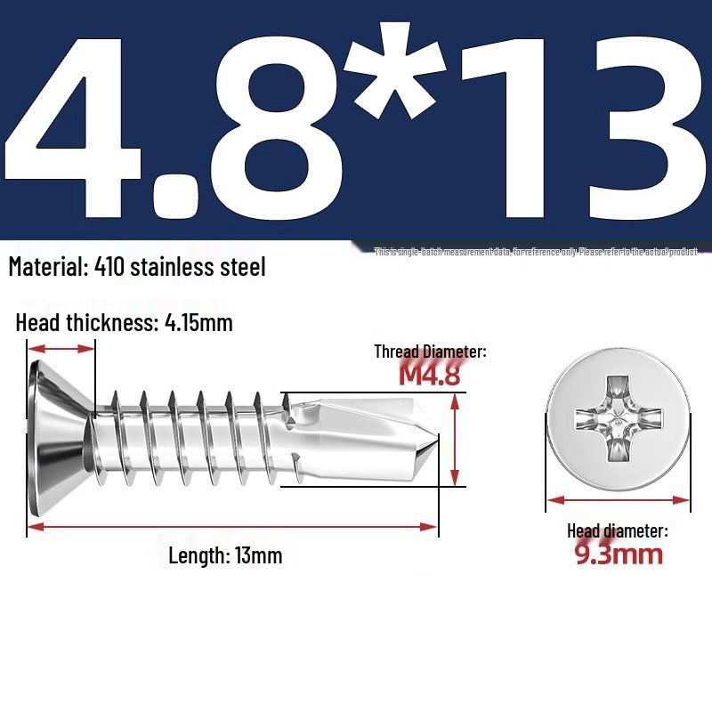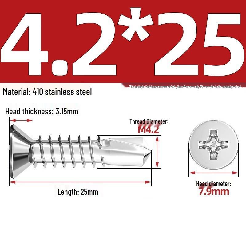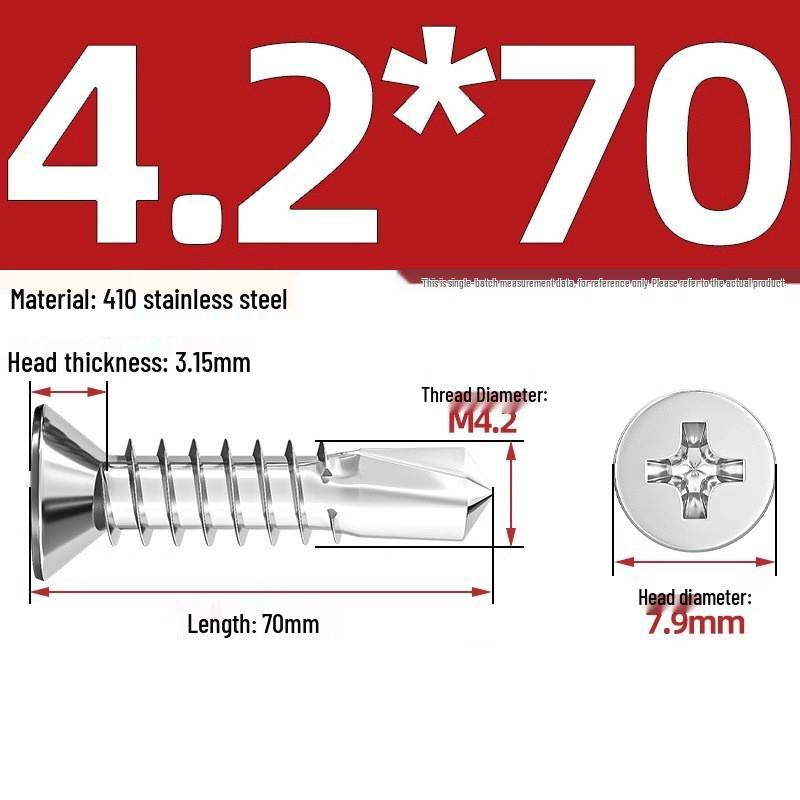 Саморезы из нержавеющей стали 410 с плоской головкой, крестообразным шлицем, потайной головкой и хвостовиком «ласточкин хвост»