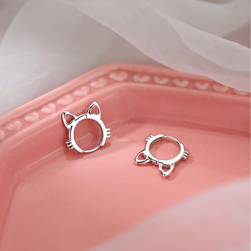 Серьги-кольца из стерлингового серебра 925 пробы с кошкой - Минималистичный летний стиль