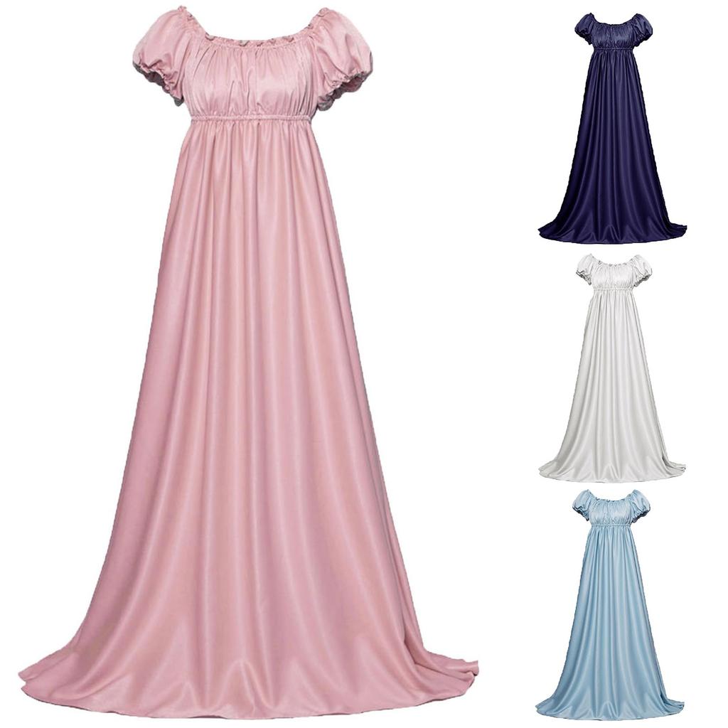 Женские платья макси с круглым вырезом, плиссированное платье, придворный костюм, свадебное платье с юбкой-солнце