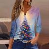 Жен. Футболка Футболка С принтом Пуговицы Рукав 3/4 Повседневные Выходные Мода Классический Классический V-образный вырез Обычный Верх