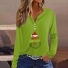 Женская футболка с рождественским принтом на пуговицах с длинным рукавом, повседневная, выходного дня, модная, базовая, с V-образным вырезом, обычная
