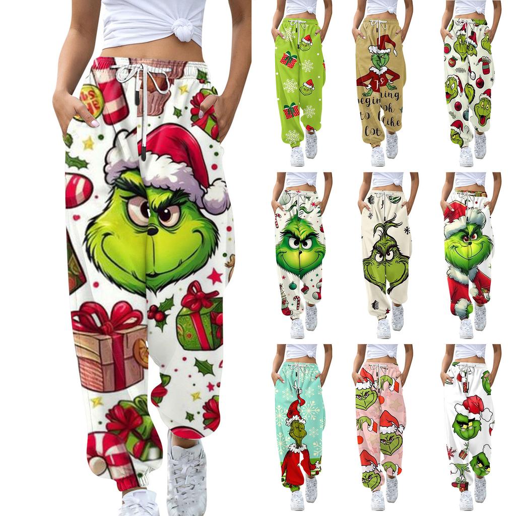 Женские повседневные модные рождественские принтованные повседневные спортивные брюки с эластичной талией и завязками на шнурке — купить товар онлайн с бесплатной доставкой по всему миру!