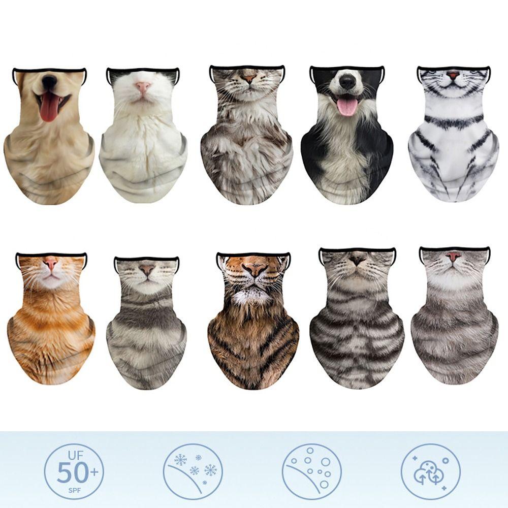 Велоспорт Бег Шарф Спортивная маска для лица с 3D-изображением животного Летний ледяной шелк Дышащая бандана Прохладный шарф Защита шеи