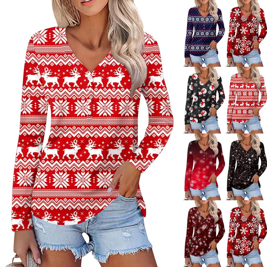 Женская повседневная мода сексуальный комфорт рождественский принт V-образный вырез пуговицы длинный рукав — купить товар онлайн с бесплатной доставкой по всему миру!