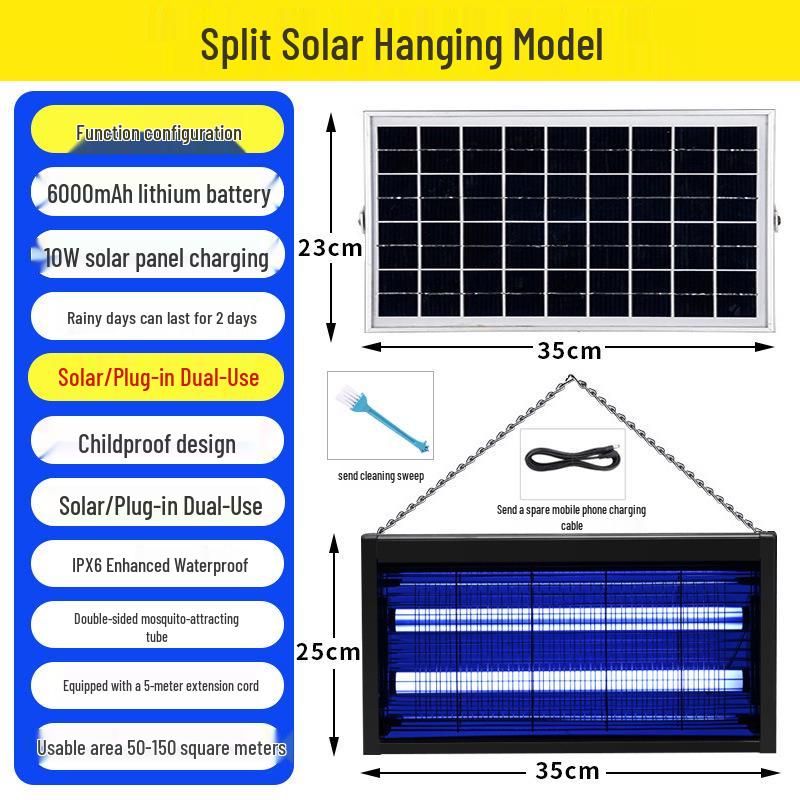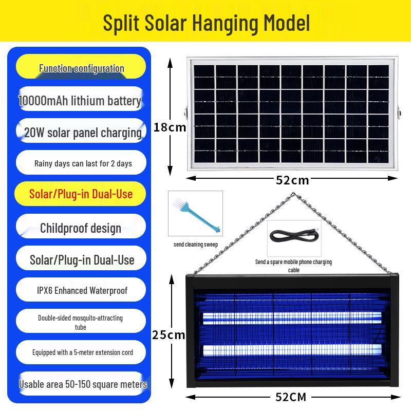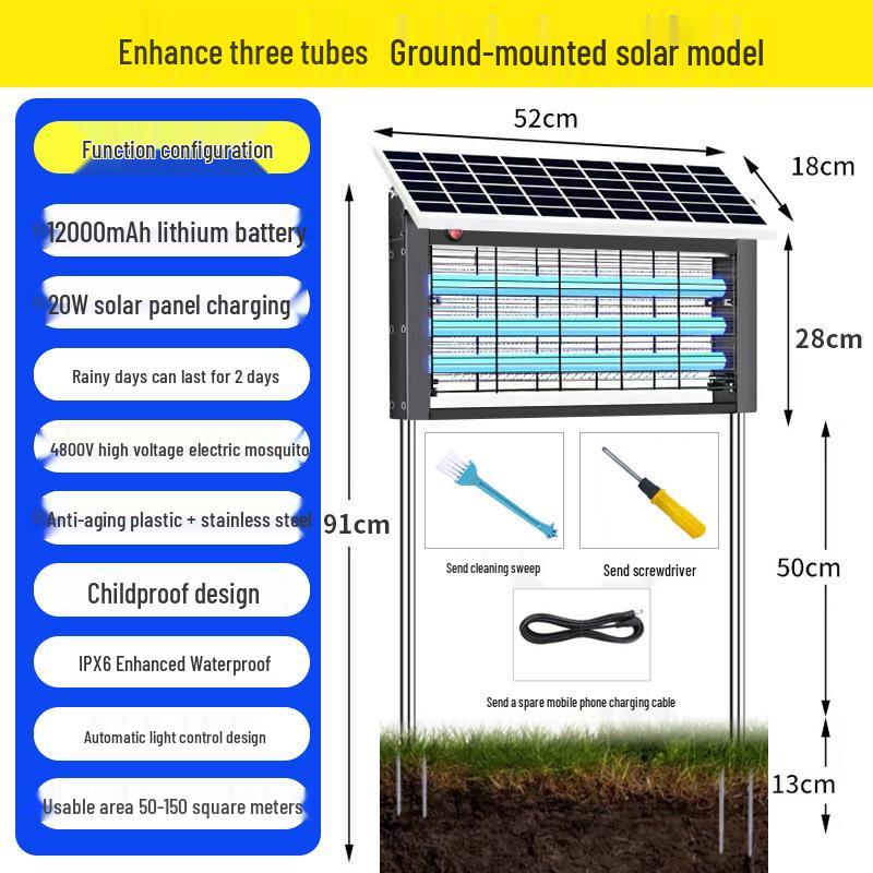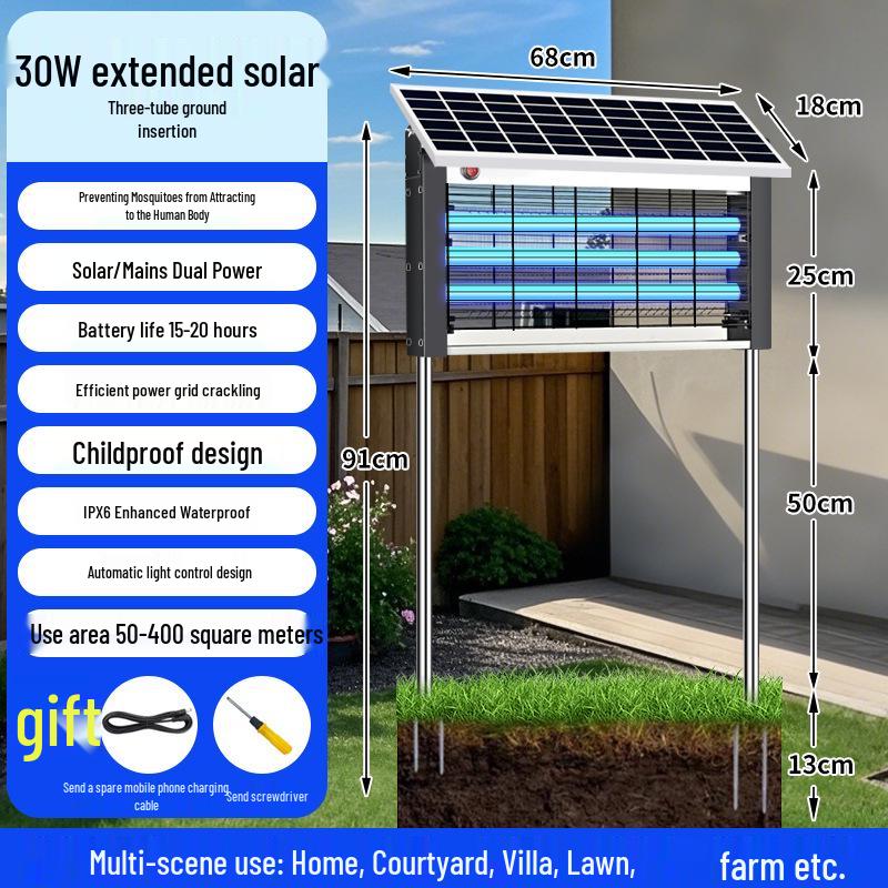 Солнечная водонепроницаемая лампа-уничтожитель комаров для использования на открытом воздухе - Мощный фиолетовый свет