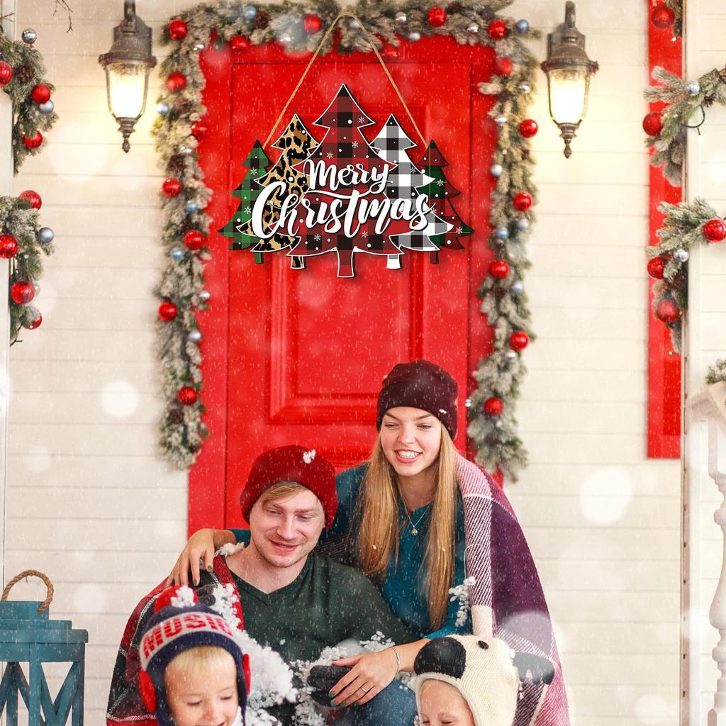Веселый рождественский дверной знак, клетчатая елка, деревянный декор, подвесная табличка для крыльца, рождественский фасад, наружный домашний декор(дерево ) Характерный: