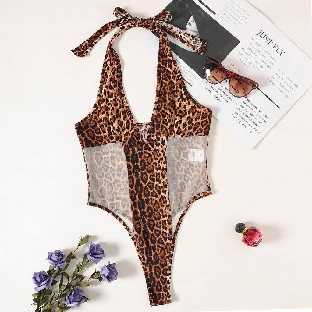 Женское боди с леопардовым принтом и халтер-шеей – Европейское и американское сексуальное нижнее белье