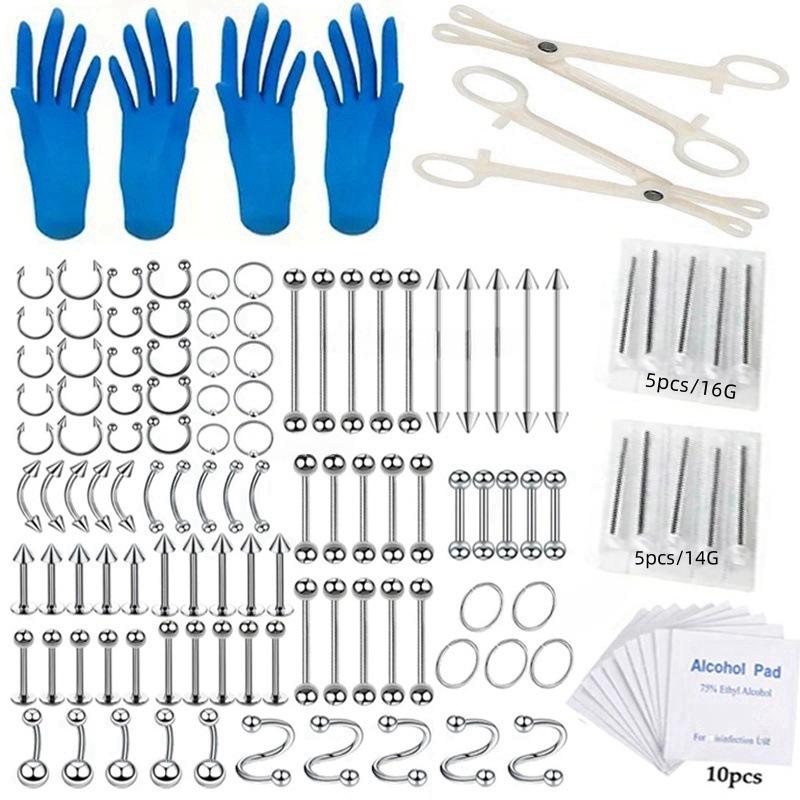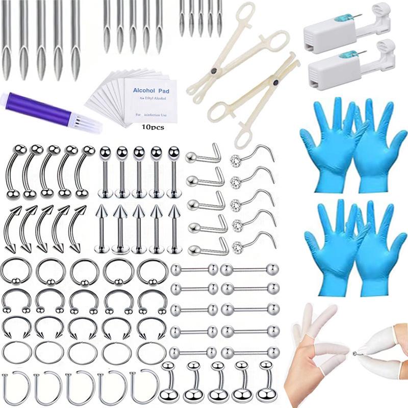 Европейский и американский набор инструментов для пирсинга из титановой стали: Пирсинг губы, кольцо-подкова для носа и пирсинг