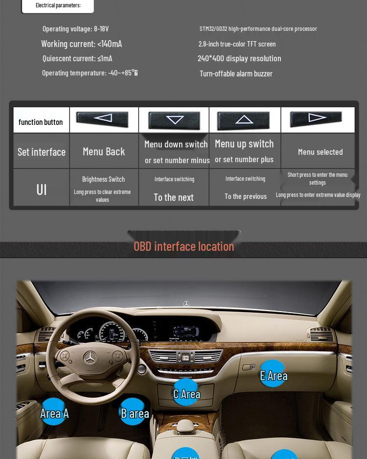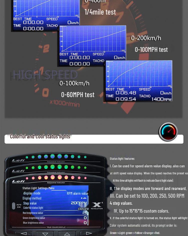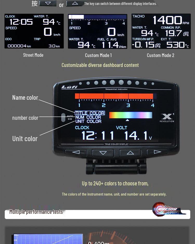 Мультифункциональный OBD-датчик LUFI x1 для автомобиля: Соотношение воздух-топливо, об/мин, температура масла/выхлопных газов, напряжение, температура воды, давление турбонаддува.