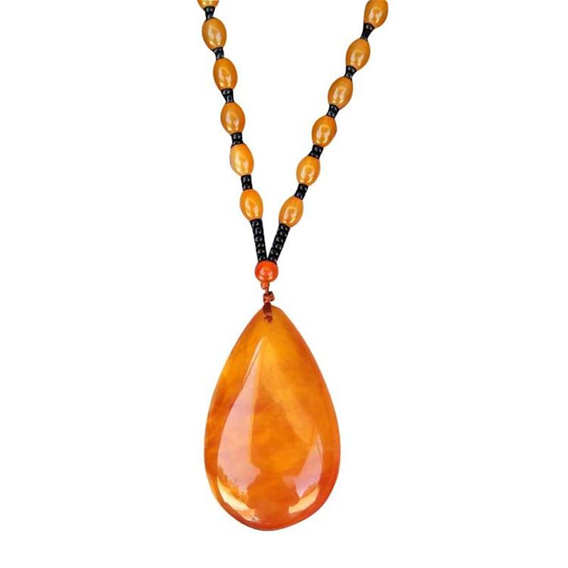 Винтажный богемный этнический стиль, пчелиный воск, янтарный кулон, женский свитер, цепочка, ожерелье из бисера