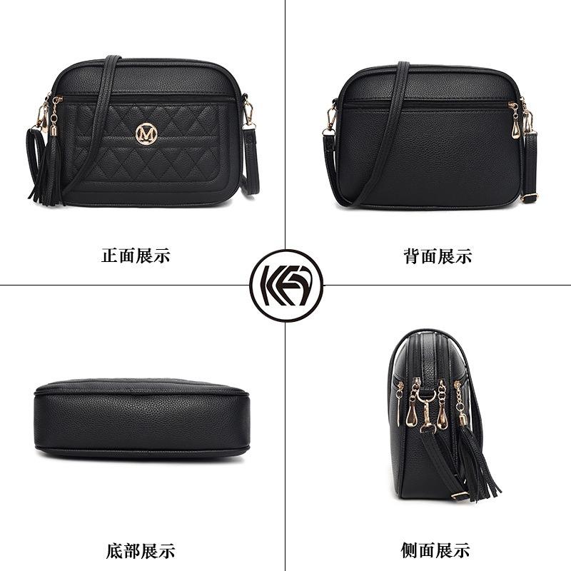 Women's soft leather rhombus multi-layer diagonal straddle bag single shoulder high-end sense versatile large-capacity fringed messenger bag