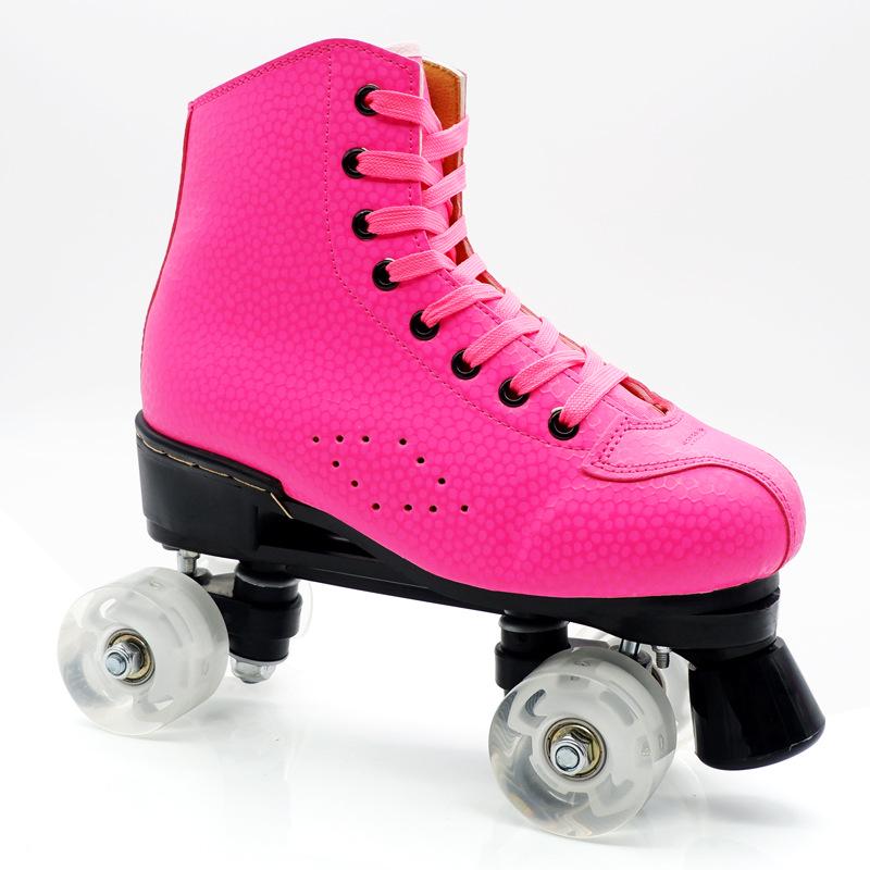 Розово-красные двухрядные роликовые коньки для взрослых с мигающими колесами - Кожаный стиль — купить товар онлайн с бесплатной доставкой по всему миру!
