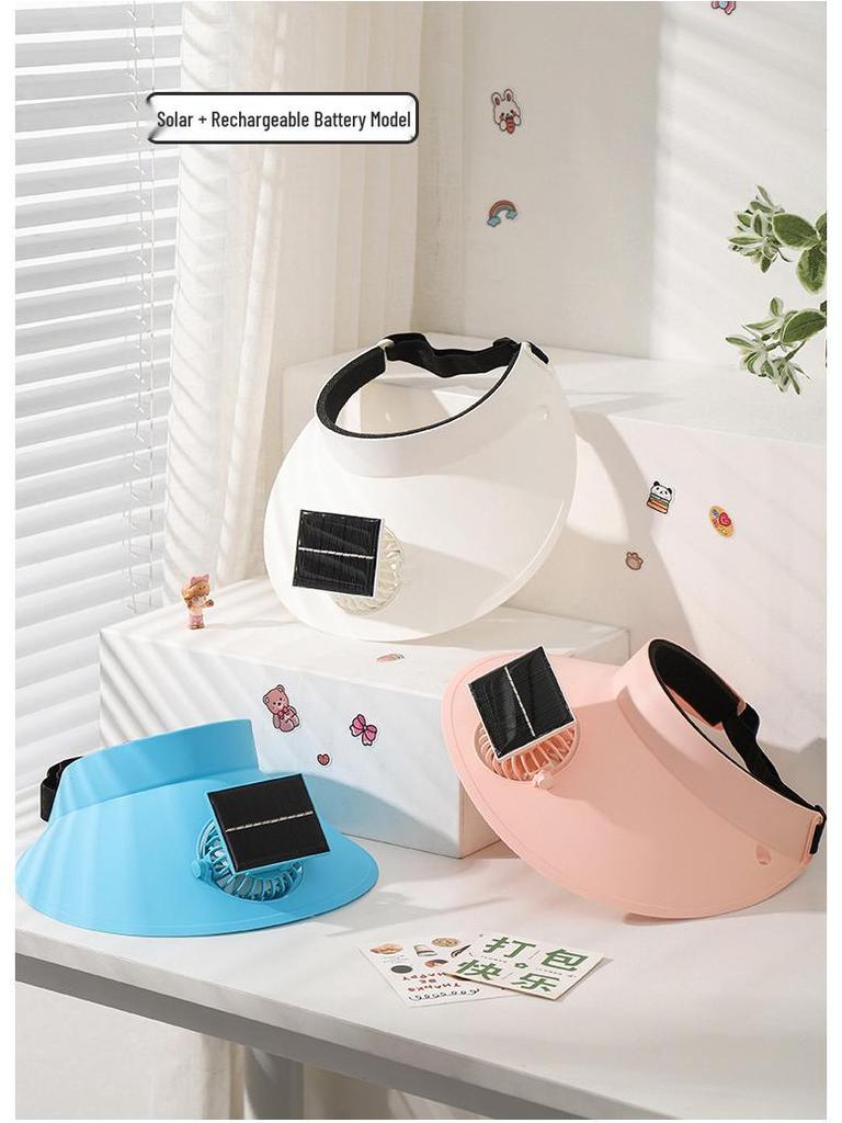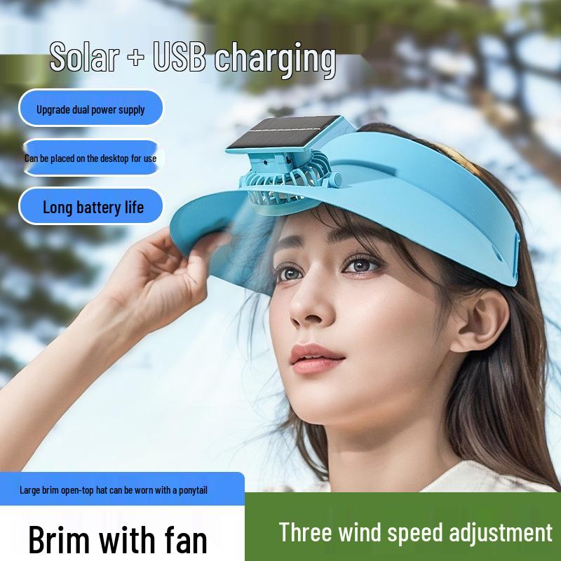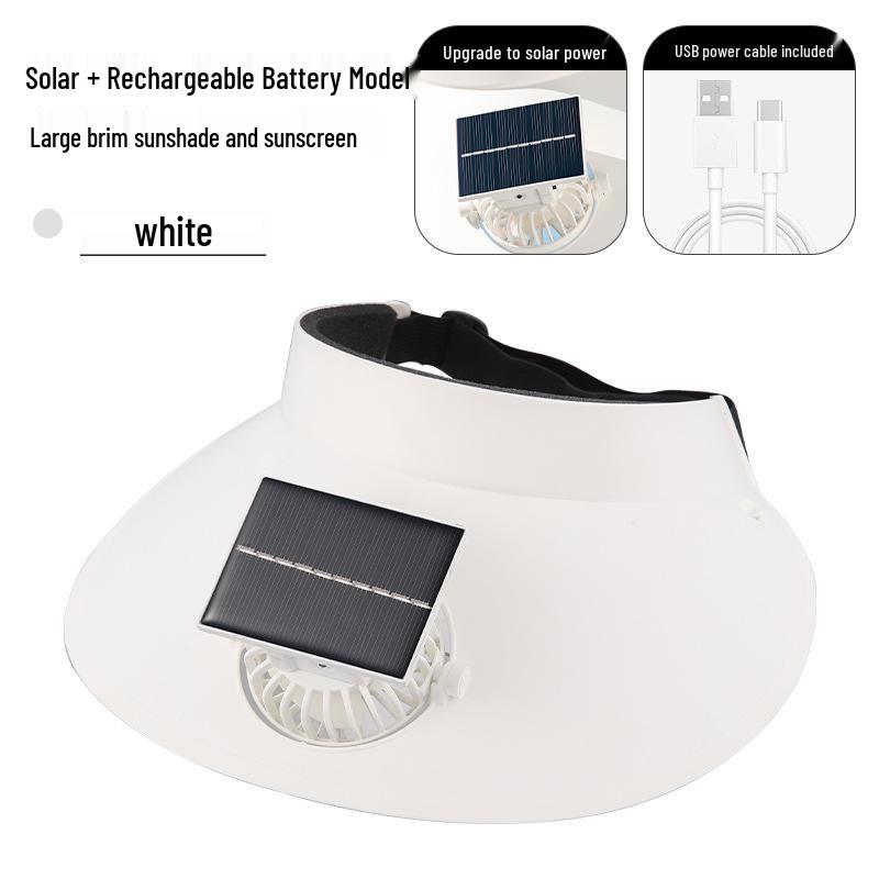 Перезаряжаемая солнечная шляпа-вентилятор - Защита от УФ-лучей, Широкие поля