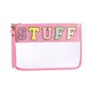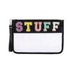 Waterproof PVC Makeup Bag with Embroidered Letter Patch - Large Capacity, Multi-functional for Toiletries & Coin Storage