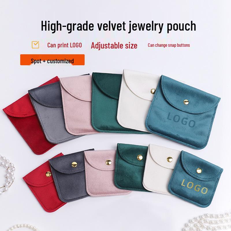 Бархатный фланелевый мешочек на кнопке для хранения ювелирных изделий - для колец, ожерелий, браслетов с возможностью нанесения логотипа на заказ