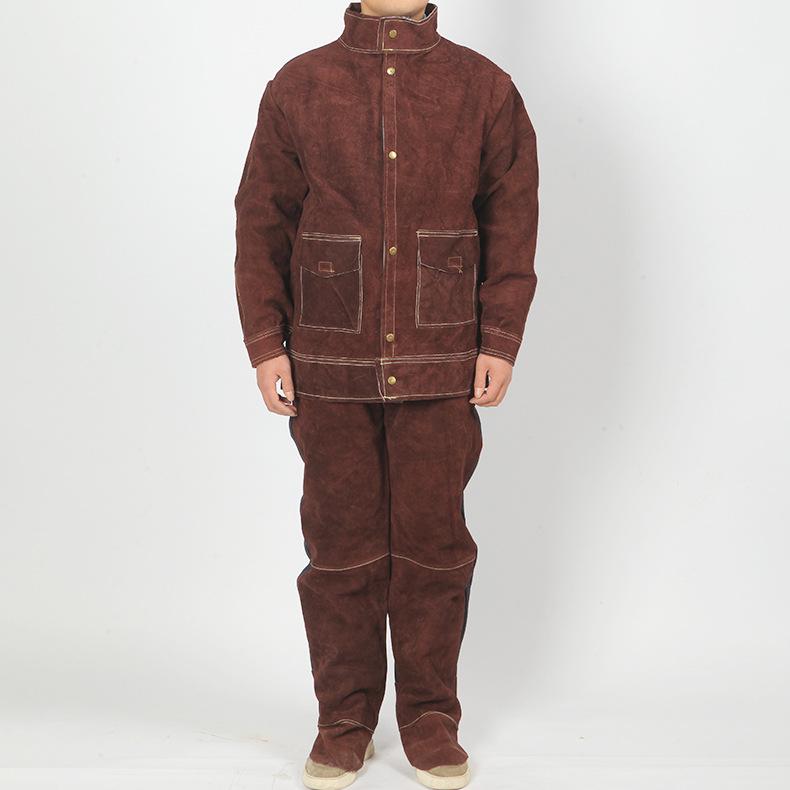 Мужской огнестойкий сварочный костюм из коровьей кожи: Теплоизоляционная, искрозащитная кожаная рабочая одежда для дуговой сварки.