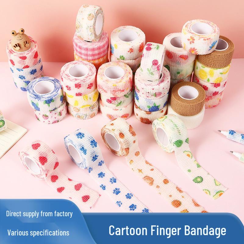 Милый мультяшный эластичный бинт для пальцев - Нетканый, Самоклеящийся, Прочный Студенческий Защитный Бинт