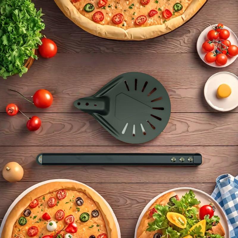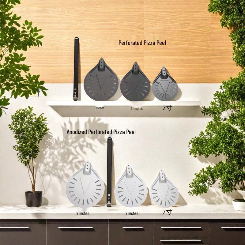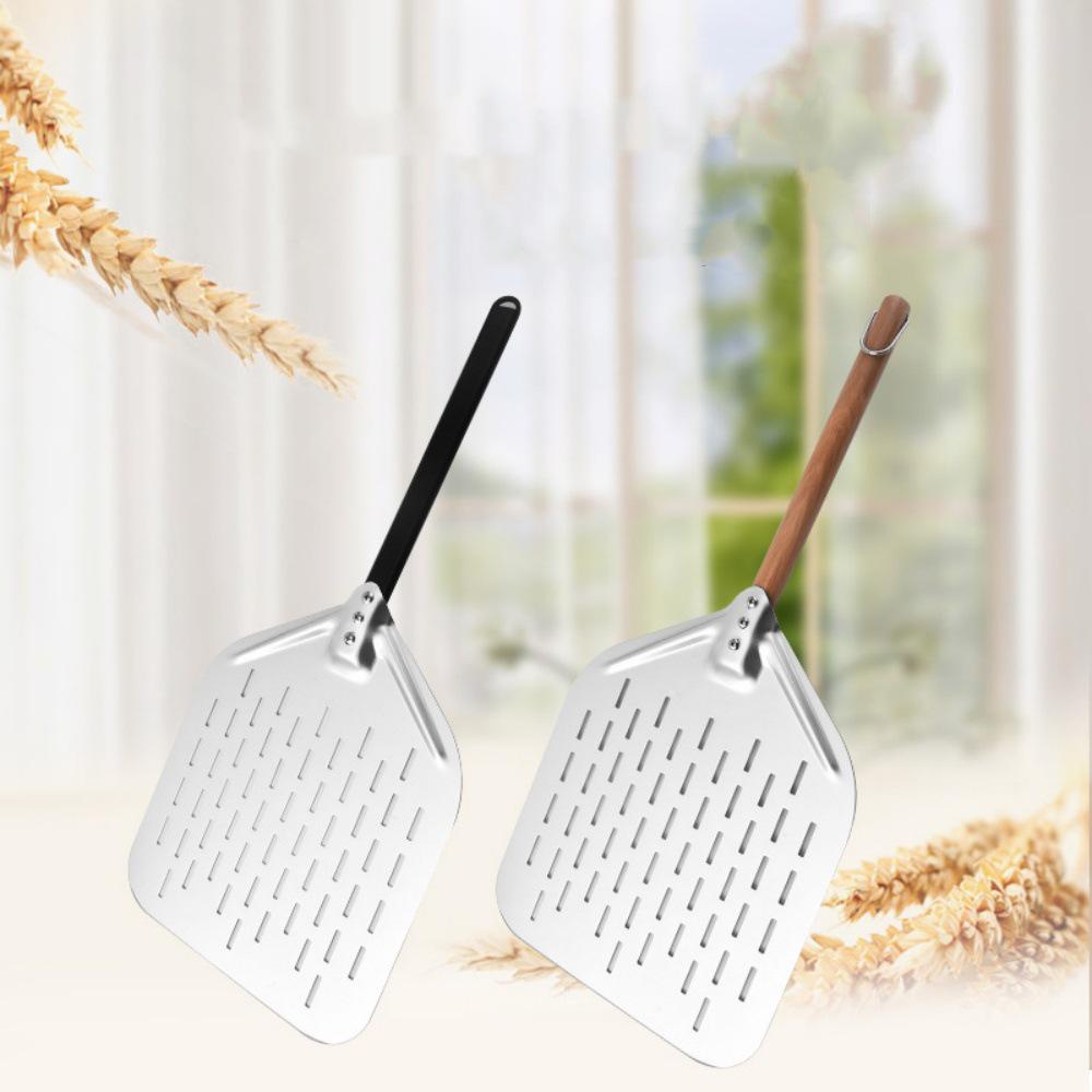 Круглая перфорированная лопата для пиццы из нержавеющей стали с деревянной ручкой для домашней выпечки и переноса тортов