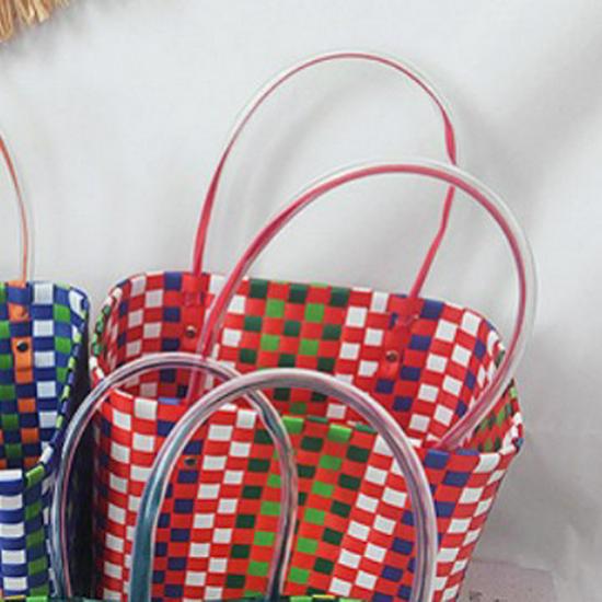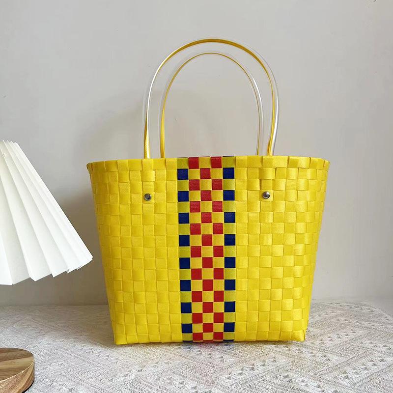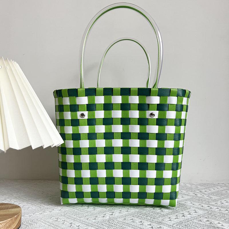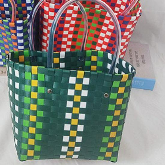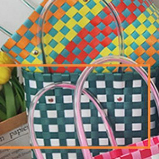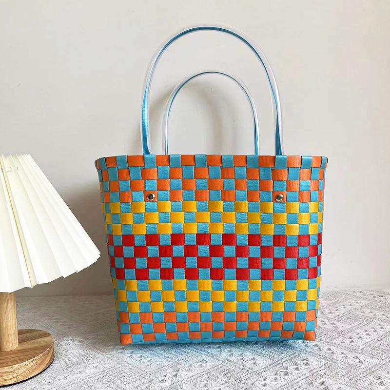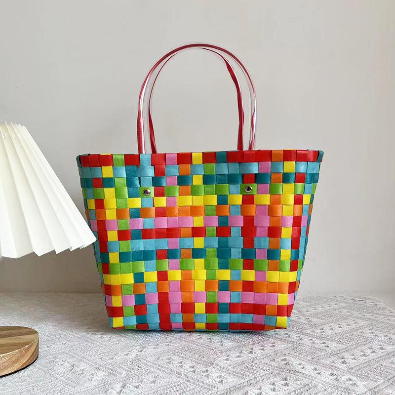 Детская радужная клетчатая плетеная сумка - Летняя сумка своими руками для овощей и фруктов