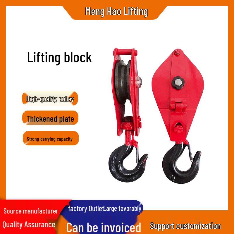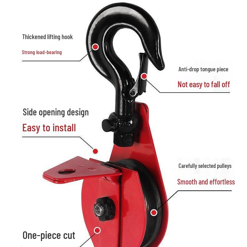 Heavy-Duty Lifting Pulley Block with Bearings and Hook for Manual Hoisting