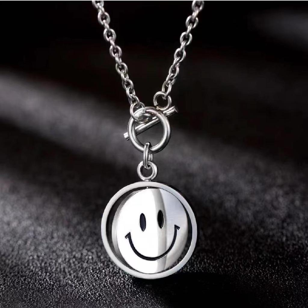 Ожерелье-свитер из нержавеющей стали с вращающимся смайликом - Универсальное украшение в стиле хип-хоп, длинное