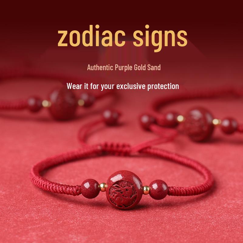 Натуральный киноварный зодиакальный браслет - Год Дракона, ручной работы, красная нить для женщин