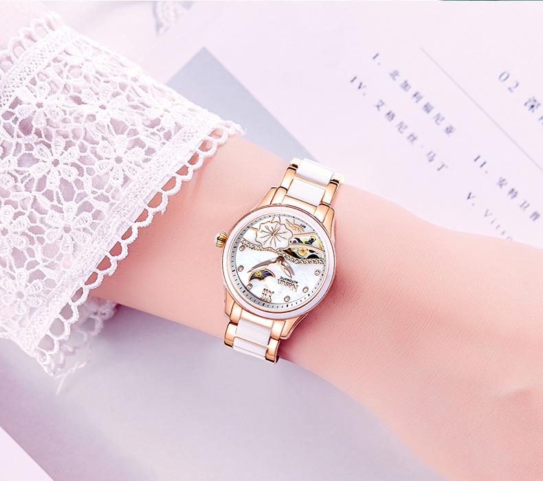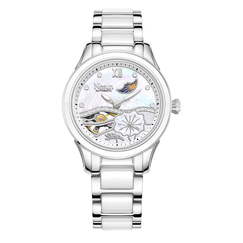 Женские автоматические механические часы NESUN - Стильные, Светящиеся, Водонепроницаемые, Дизайн с полым циферблатом для подарка на День святого Валентина